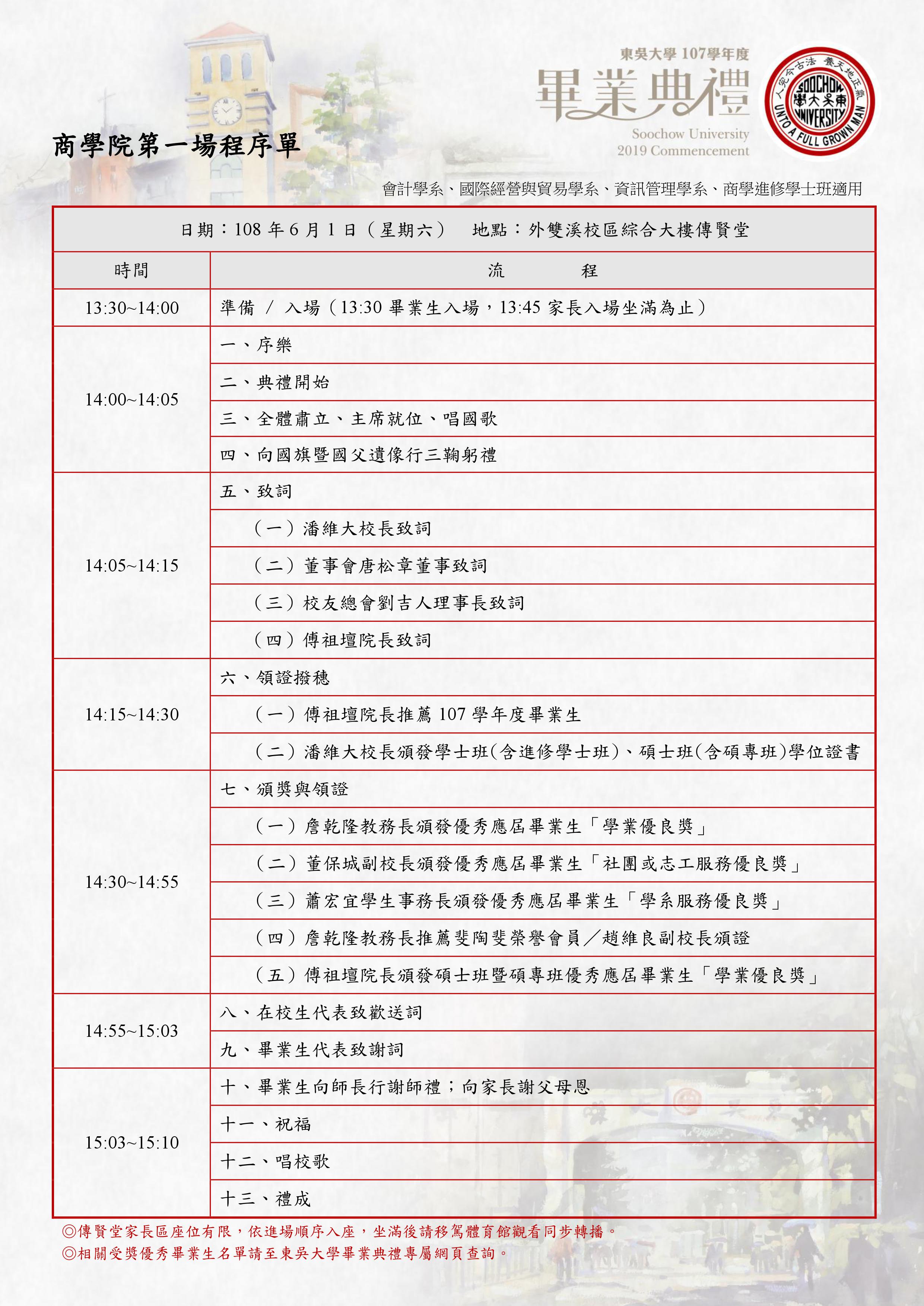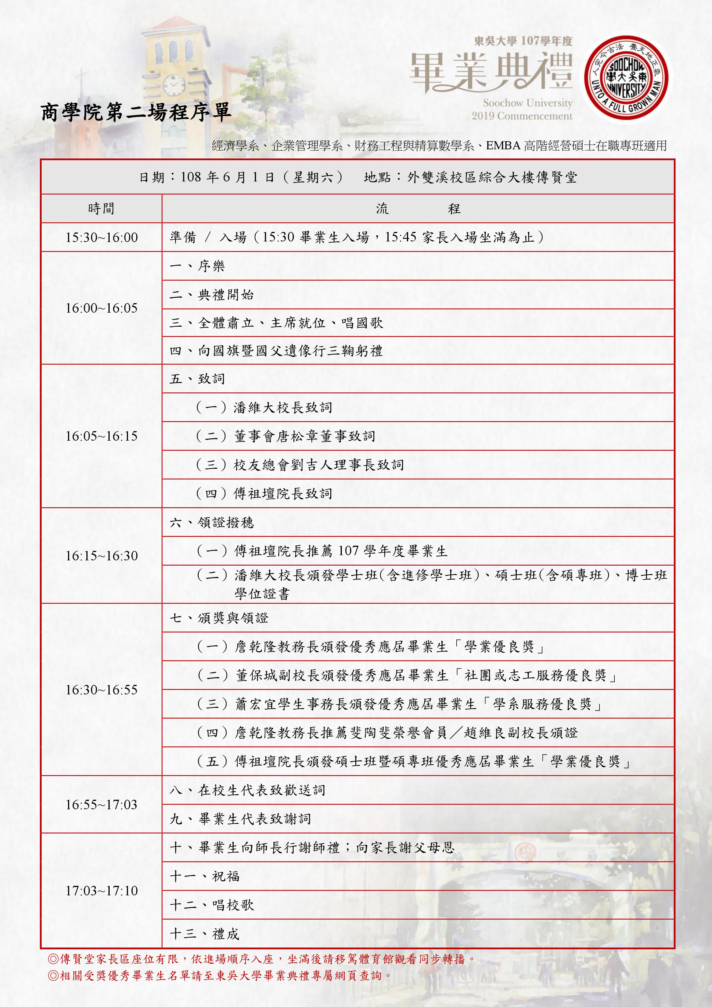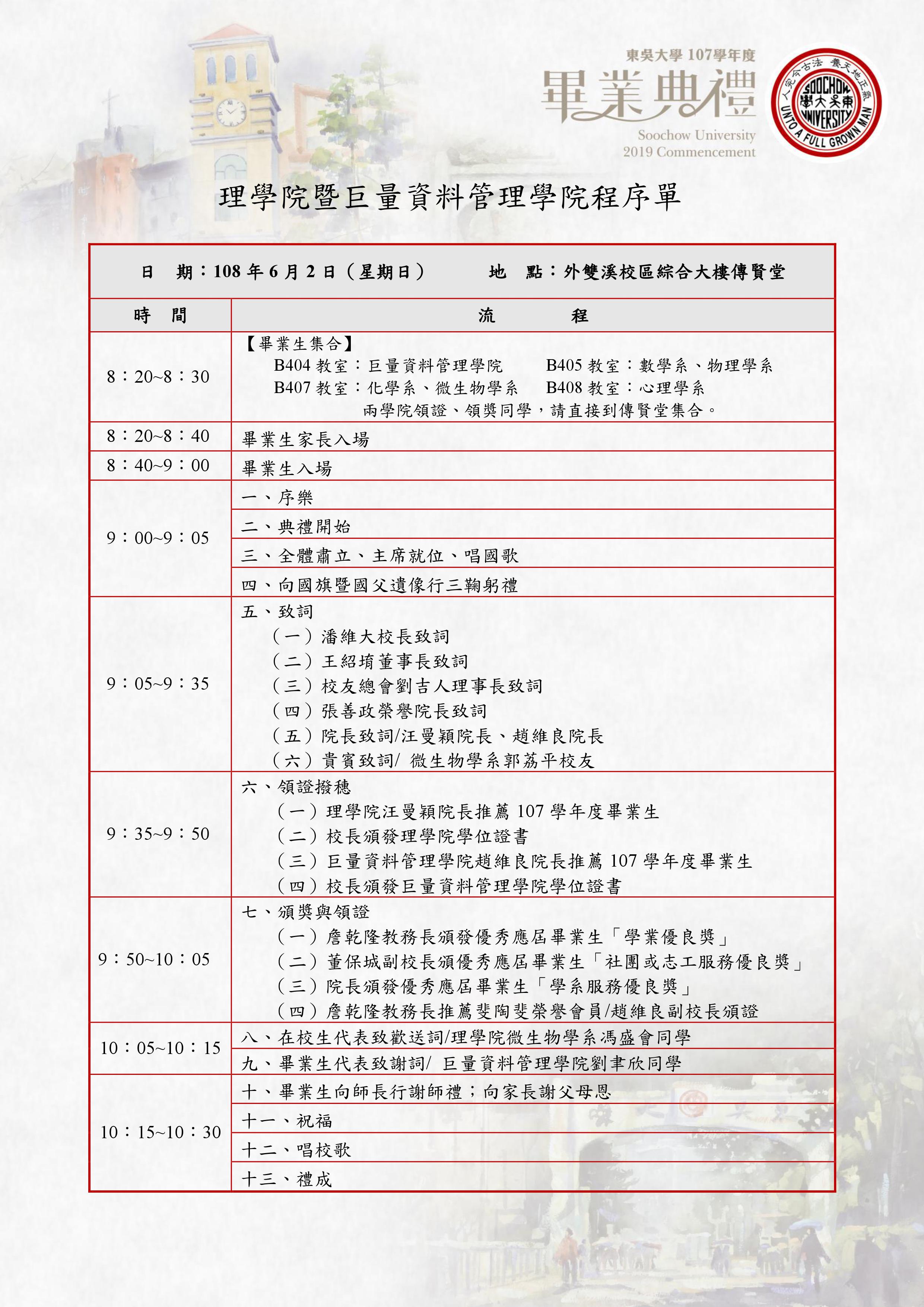 【各學院畢業典禮程序表】