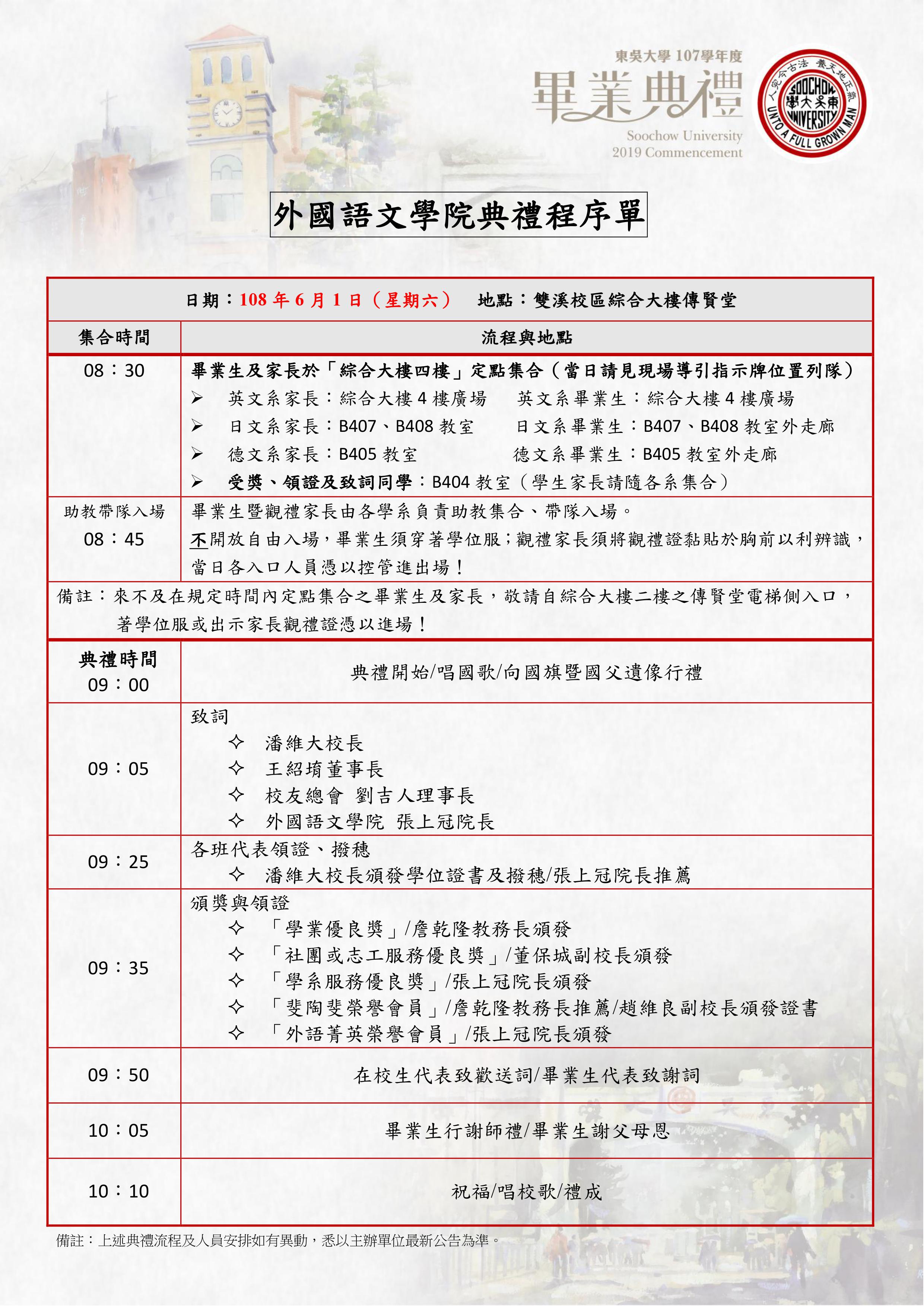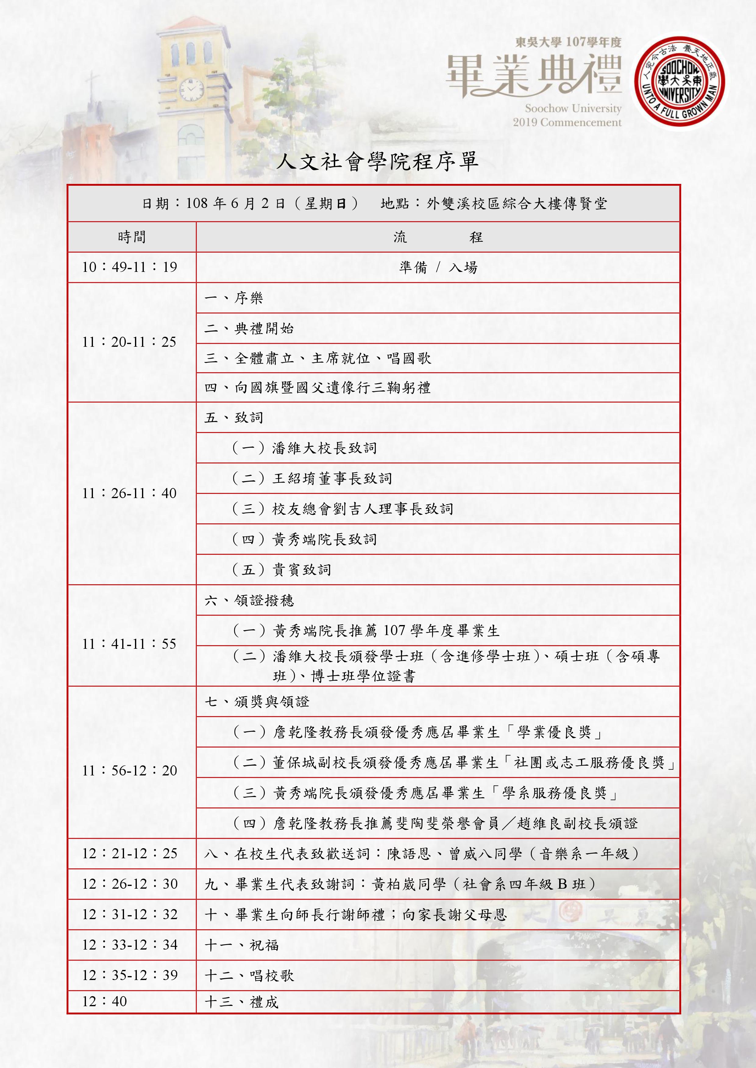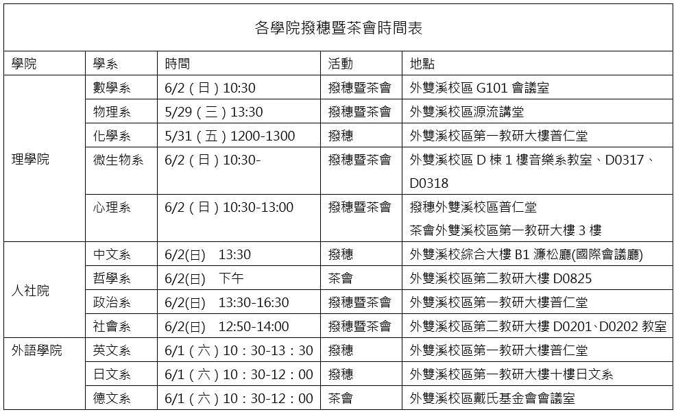 【各學院畢業典禮程序表】