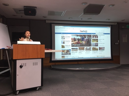 除了介紹電視台內部的硬體設施及節目製作流程,公視製作人兼主持人王晴玲小姐也特別向校園記者們介紹公視的PeoPo公民新聞。「PeoPo」是英文「people post」的縮寫,強調每個人都有發聲權利,落實公民媒體近用權;也取台語「撇步」的諧音,希望有心於公眾事務及議題的閱聽大眾,能夠分享自己的專業領域與知識及所見所聞。除了介紹PeoPo公民新聞外,王小姐也告訴校園記者們,公視每年都有舉辦的「暑期研習營」,透過一系列課程的訓練,即使是非傳播相關科系的學生,也能夠獲得扎實的訓練,讓未來有心進入媒體業界的人,增加實務經驗也增加錄取機會。本校雖沒有媒體相關科系,但是透過2小時的電視台參訪,讓校園記者們更加認識電視台實際運作的樣貌,也讓真正有興趣於媒體業的人了解,只要有心學習,一定會有管道能幫助自己找到適當的道路。