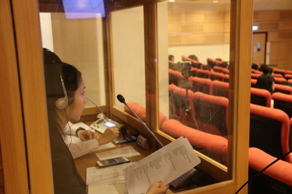 本校英文系5月9日在外雙溪校區舉辦同步口譯成果展,本次主題為「用不同角度看台灣」,邀請Youtuber妮妮及Vai分享韓國與台灣的文化差異,並由英文系學生進行「中譯英」同步口譯。