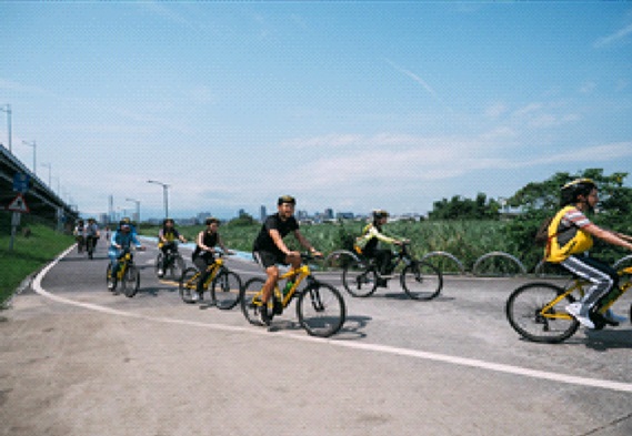 25日早晨,外雙溪校區已排滿上百輛自行車,高懸的艷陽,象徵著師生們的熱情。在潘維大校長及軍訓室高應欽主任的行前叮嚀及精神喊話後,一行人浩浩蕩蕩從外雙溪校區沿著水岸自行車道出發,行經土坡堤、關渡宮、紅樹林及紅毛城等景點,沿途飽覽淡水河岸美麗風光,於中午時抵達淡水漁人碼頭。