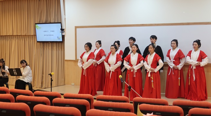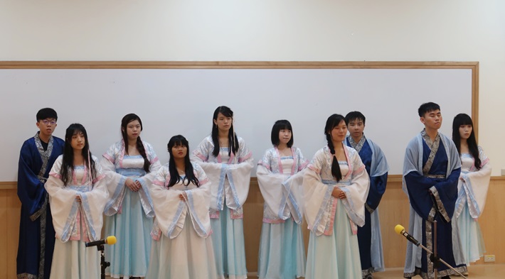 停雲詩社此次準備了〈望海潮〉(柳永)、〈破陣子〉(辛棄疾)、〈臨江仙〉》(蘇軾)等經典曲目,在慢詞長調、柔聲鶯語中,引領現場聽眾進入千年前詩人的作品意境中,感受詩詞帶來的感動與震撼。隨後,師大沐風詩詞吟誦隊、淡江大學驚聲古典詩社也分別進行吟唱表演,各具風格,婉轉動聽。