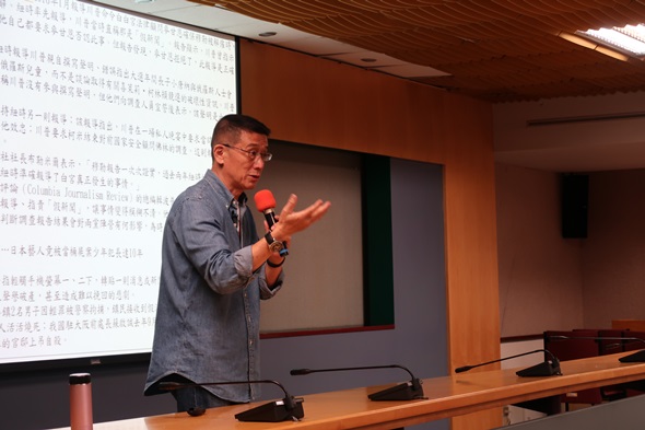 「不是每一條新聞,都有一個王浩說給你聽。」王浩老師在開場時便如此逗趣地說。在接受大量訊息的過程中,我們無法一一消化咀嚼那些零碎而片斷的內容,然而,新聞報導的真正價值何在?站在閱聽人的角度又該如何思考?王浩老師首先提出這些問題,讓在場學生思索,並以今年4月,台中一起「國三生遭霸凌而跳樓輕生」案件為例,提出當時的媒體報導沒有完整呈現事件的始末與全貌,明確指出「新聞的天秤只傾斜一邊,導致報導內容失衡」的問題。