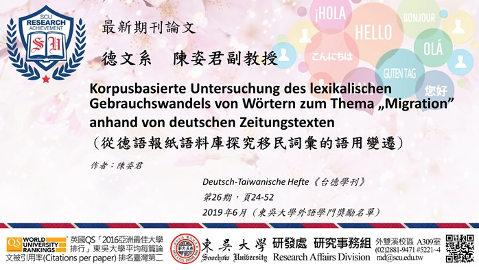 德文系陳姿君副教授發表最新期刊論文