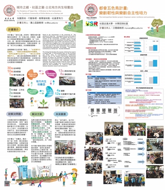 本校此次參展之3件USR計畫係為教育部107年至108年補助之A類種子型計畫,分別為人文社會學院黃秀端院長主持之「留住歷史的記憶-士林眷村文化保存與展望」,社會工作學系萬心蕊副教授主持之「城市之緣.社區之窗-士北地方共生培養皿」及理學院汪曼穎院長主持之「都會五色鳥計畫-樂齡韌性與樂齡自主性培力」。