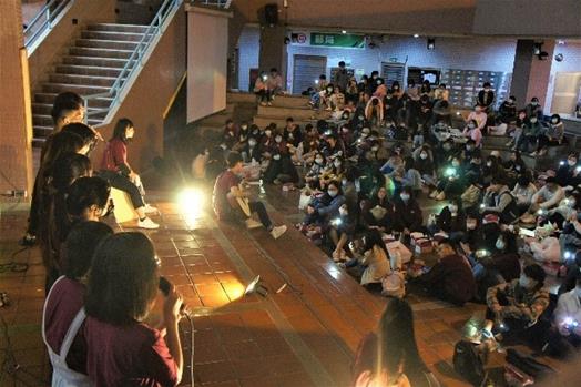 除了服務經驗分享,還有吉他社音樂服務團、基服團、桃聯返服等服務隊帶來手語與吉他演奏精彩表演,學生們透過舞蹈與音樂,將服務的快樂渲染在望星廣場的每一個角落,在動人的吉他旋律下,全場同學一同舉起手機閃燈,在黑暗中劃出一道道美麗的光束,象徵服務力量閃耀萬丈光芒。