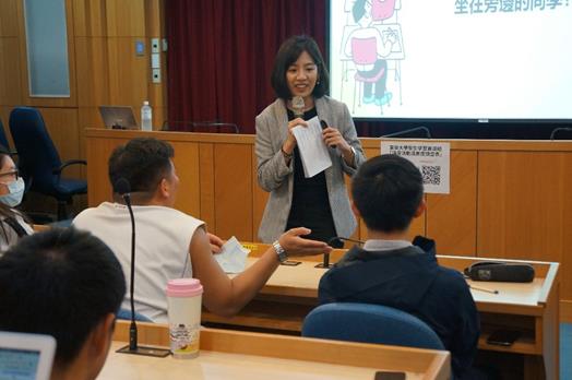 演講進行到尾聲,學姐建議大學生在求學生涯中去參加一場政治活動。她認為,在政治活動中,不僅能遇到與自己理念相符的人,也能嘗試了解另一方的思路,藉此鼓勵大學生們學習換位思考。