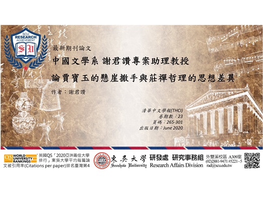 中國文學系謝君讚專案助理教授發表最新期刊論文