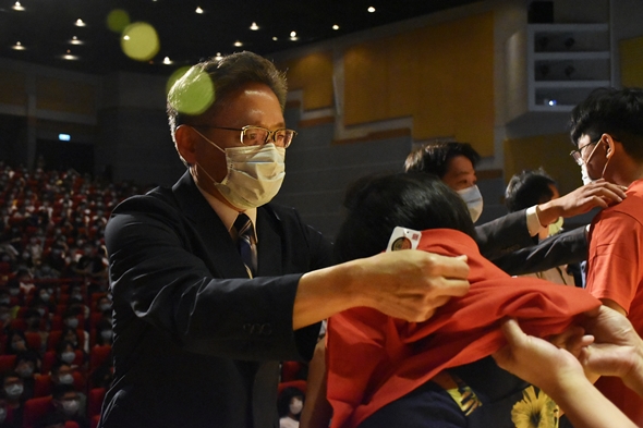 校友總會劉吉人理事長則回憶起在東吳的日子裡,在書海中累積寶貴知識,結交受用一生無價的友誼,懂得如何充滿好奇、聆聽與懷有一顆包容的心,這些收穫遠遠超過剛入學時的想像。他也期許新生們加入東吳大家庭之後,好好運用資源探索未來,並勇敢嘗試,培養自己成為獨當一面且有想法的青年,四年以後校友總會將以在座的各位為榮。