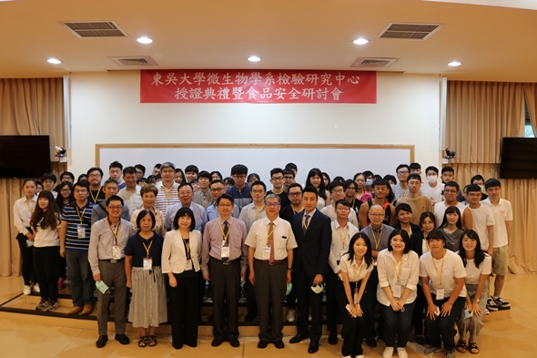 東吳大學微生物檢驗研究中心於109年9月19日舉行揭牌儀式,由潘維大校長及李重義中心主任共同主持,趙維良副校長、董保城副校長、王淑芳社資長、莊媖琁總務長、賈凱傑主任秘書出席。並於同日舉辦「授證典禮暨食品安全研討會」,邀請全國認證基金會(Taiwan Accreditation Foundation, TAF)許景行執行長頒授認證證書;以及,邀請食品工業發展研究所廖啟成所長、全國認證基金會賴勇佐經理、SGS 許家寬經理,擔任食品安全研討會講者,共同探討食品安全相關議題。
