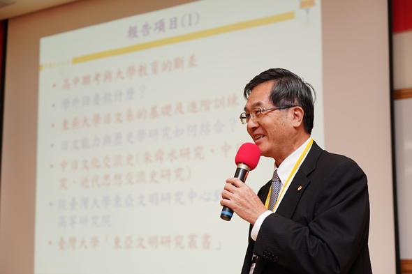 本次論壇主題為「迎接外語教育新時代」,由甫獲本校第五屆傑出校友的中國文化大學徐興慶校長(日文系72級)擔任專題演講人,他以「我的學思歷程—從外語學習到跨領域研究」為題,細數在東吳日文系接受嚴謹訓練的求學過程,憑著紮實的日語能力開始鑽研歷史學研究、日本研究,並推動國際區域研究,以亞洲為視野,立足台灣,探討「東亞學」的建構與變遷等相關議題。徐校長亦致力於促進人文與社會科學的對話,培育並整合跨領域的年輕研究人才,他勉勵學子「學問的核心價值在於興趣」,不應以薪水高低的價值觀隨波逐流。