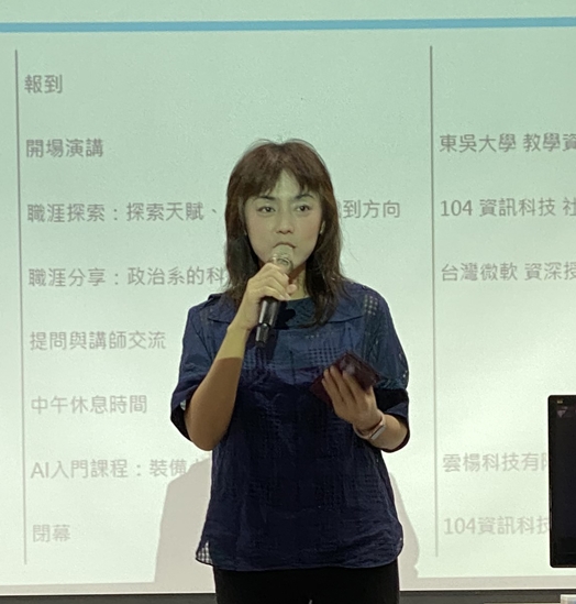 台灣微軟近期攜手104職涯學院舉辦「科技即戰力職人計畫」校園活動,深入校園為台灣未來人才實力超前部署。並且為協助學生培養第二專長,此次計畫鎖定非資訊相關科系,前進全台近10所大學,本校為首批參與學校之一。第一場次於3月20日由本校教學資源中心朱蕙君主任開啟序幕,以及接續的台灣微軟資深授權業務Brian Liang經理分享,均提到從原本非資訊科系的背景轉換到數位科技的專業領域,是需要經過一番努力,而透過主動學習,可以提升自我競爭力!第二場次於4月25日由台灣微軟資深業務Max Yang協理,熱情地致詞歡迎東吳師生來到微軟。接著由微軟亞洲全球黑帶團隊AI/ML張令儀專家,分享他從國文系轉型的心路歷程及目前職場上所面對的實際問題。