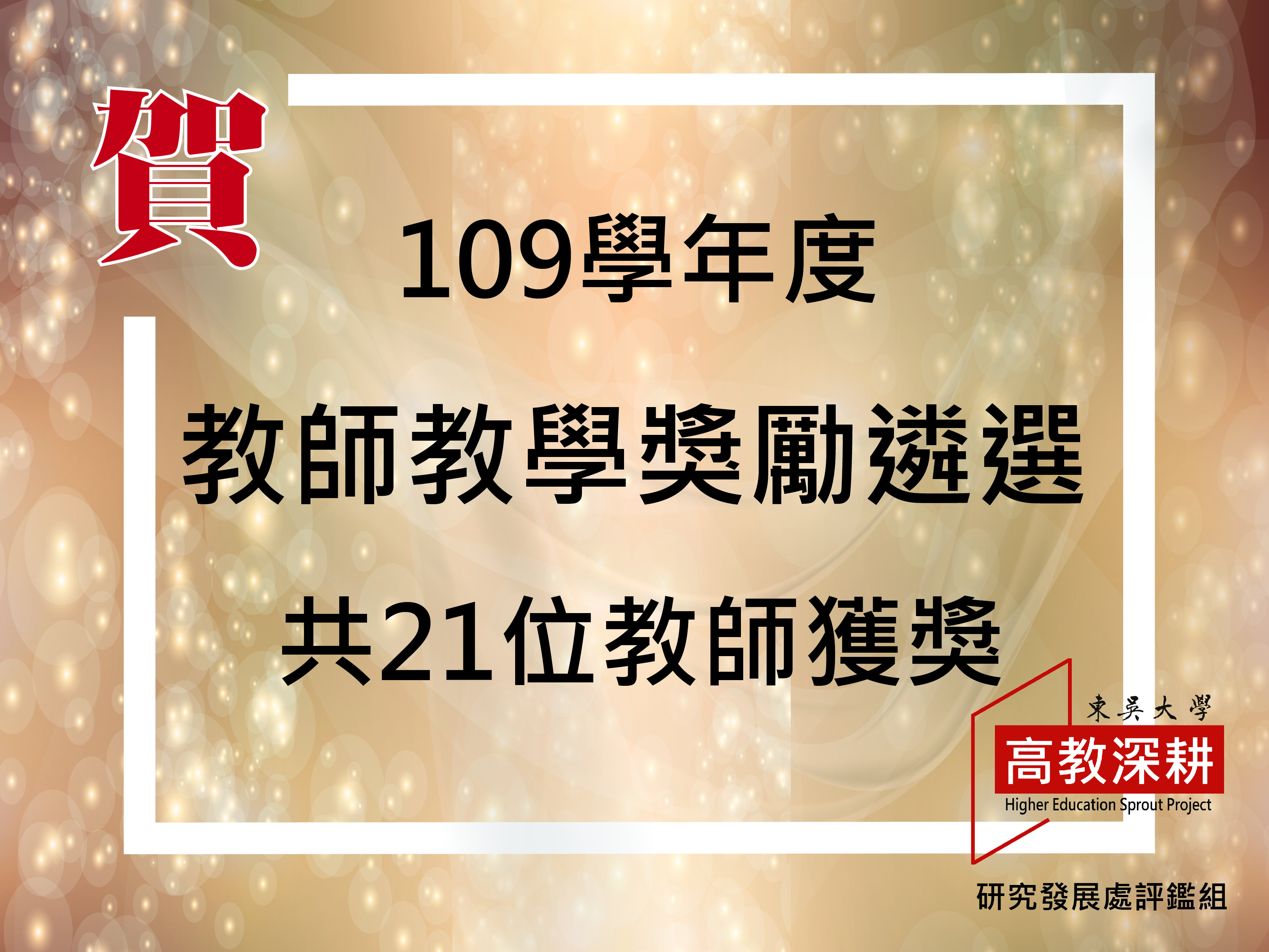 「教師教學獎勵遴選委員會」,針對候選教師所提出之各項教學教材、教學成果、師生互動等佐證資料進行審查,歷經兩次會議後,遴選出「教學傑出」教師2名與「教學優良」教師19名。109學年度獲獎名單如下: