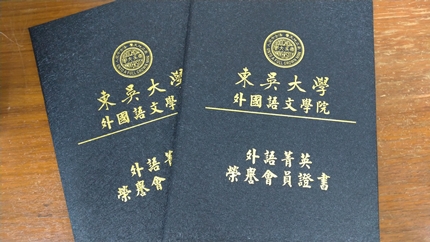 外國語文學院為選拔優秀學生,鼓勵發展全方位能力,自107學年度經院務會議決議通過辦理「應屆畢業生外語菁英選拔」,本(109)學年度第三屆「應屆畢業生外語菁英選拔」結果出爐,恭喜8位學生獲選為榮譽會員,分別是:英文學系黃子庭同學、英文學系艾榮恩同學、英文學系曾嘉淇同學、日本語文學系洪佳妤同學、日本語文學系吳英緩同學、日本語文學系蔡承安同學、日本語文學系譚鈺憲同學以及日本語文學系連秋螢同學。