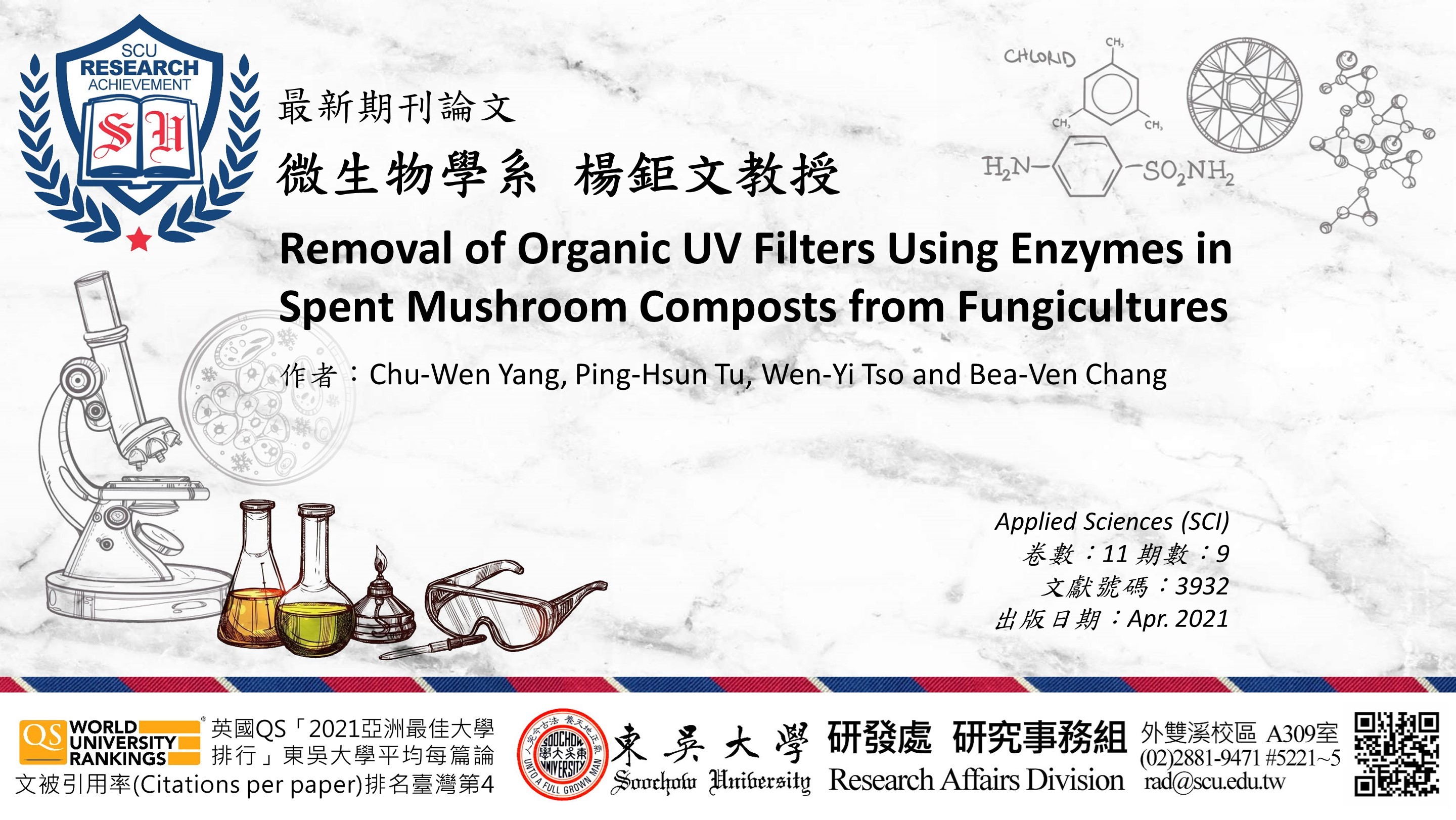 本論文探討利用菇類栽培後基質去除汙水中有機UV過濾劑(防曬劑)。