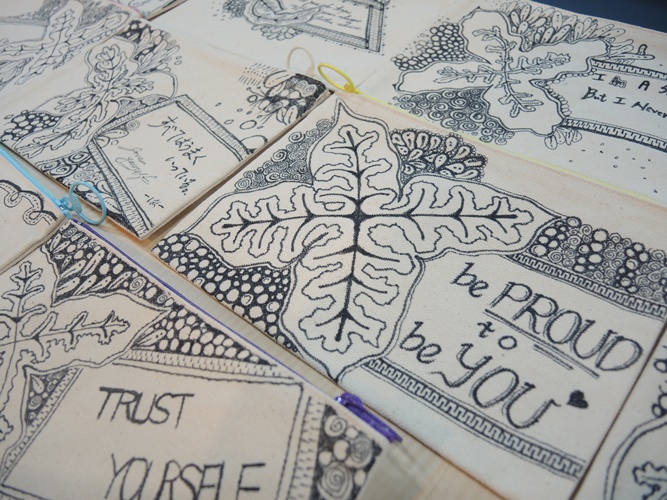 本次禪繞藝術手作坊圓滿結束,最後的成品發表,每位同學揮灑創意的結晶躍然布上,一筆一劃,勾勒出人人心中的獨特樣貌。每個人的心中都有自己夢想成為的樣子。透過本次活動,希望同學們都能夠更加理解自己,找到自己心中的種子,用愛去澆灌,使它成長、發芽,更希望大家不只喜愛自己的創作,也更有勇氣去相信自己、愛自己。