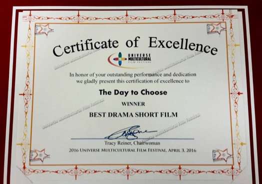 前往加州參加影展的鄭匡宇上台領獎致詞表示,非常高興第一次擔任監製、投資的電影短片,獲得2016年美國世界民族電影節的最佳劇情電影短片獎!尤其當他告訴在場所有人,導演李永為今年只有23歲時,台下一陣驚呼。他希望未來能繼續培養更多的年輕人,用電影走向世界,用電影與全世界交流!