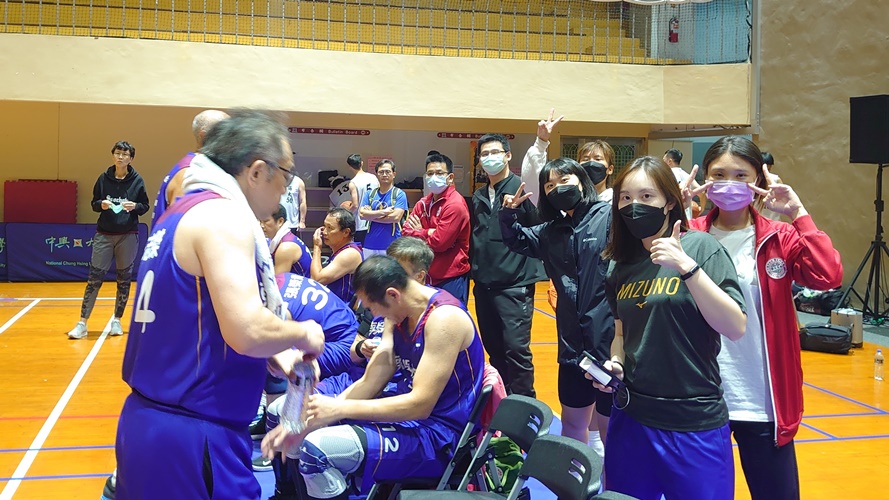 李坤璋學務長領軍的丙組,由推廣部吳吉政主任擔任先鋒,隊員包含資訊管理系黃日鉦教授、資料科學系呂明頴助理教授、財務工程與精算數學系蕭維政助理教授、註冊課務組廖瑋麗組員共6名選手;今年是丙組成軍的第二年,預賽遇上中山大學、華夏科大以及地主中興大學。在僅有六人輪替的情況下,每位選手都全力以赴,發揮超水準之表現,中距離、三分球、快攻樣樣來,隊友們的默契絕佳,流暢的傳導也令場邊觀眾連連拍手叫好,最後取得分組第三之佳績,精彩比賽令人佩服!