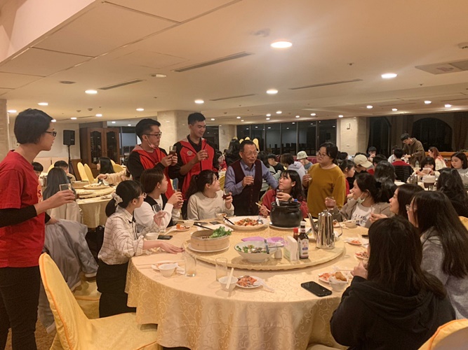 第一站抵達「協和慈善基金會」,本基金會是由本校第五屆傑出校友戴淑姝學姐(企管系76級)夫婿,現為協眾國際股份有限公司林光清董事長所成立。多年來,林董事長伉儷參與基金會扶老助學工作,基金會最為人知的善行,就是每天替苗栗頭份市老人送餐,至今20年不輟,送出的餐盒已達122萬個,若全部堆疊起來,高度應有108座101大樓之高。參訪當天適逢基金會20週年盛會,除藉此瞭解該會使命外,也感受其組織的理念及籌辦精神,如何不間斷地將愛與善傳達到偏鄉角落。