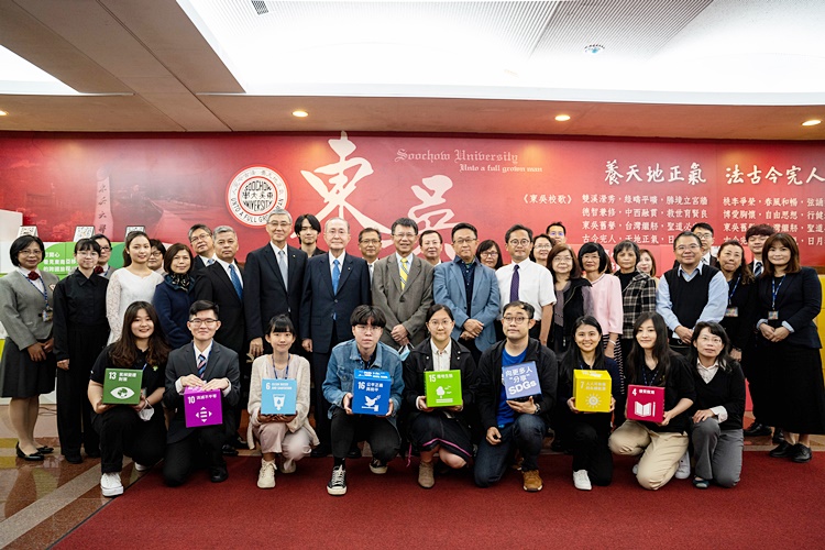 東吳大學與台灣創價學會於111年3月23日在外雙溪校區第二教學研究大樓1樓長廊,舉辦「SDGs X希望與行動的種子展」開幕式,藉由展覽使師生瞭解SDGs的目標,並進而於生活中實踐。本校與會師長為潘維大校長、董保城副校長和人文社會學院黃秀端院長、李坤璋學務長,台灣創價學會林釗理事長和林廷峰執行長亦到場參與。
