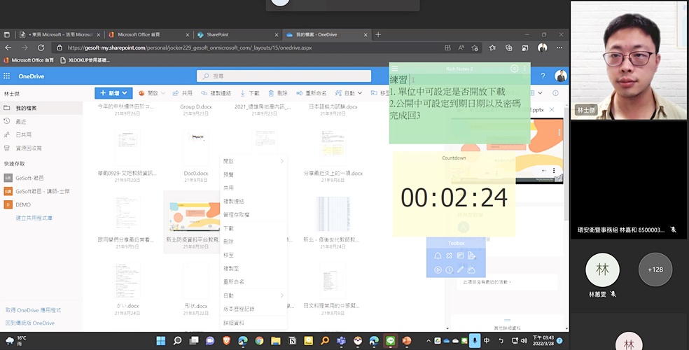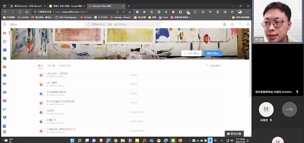 想在團隊合作中製作簡報、設計表單、分享文件都能輕鬆上手嗎?那便是本校師生每人都擁有一組專屬帳號,可以免費使用Microsoft365的各種軟體。本校學生學習資源組於111年3月28日在線上舉辦「活用Microsoft365」多元工作坊,邀請君邑資訊有限公司專任講師林士傑,和師生們講授各軟體最新穎且私藏的功能,讓你在面對龐大複雜的頁面時也能得心應手,成為團隊合作中的勝利者。