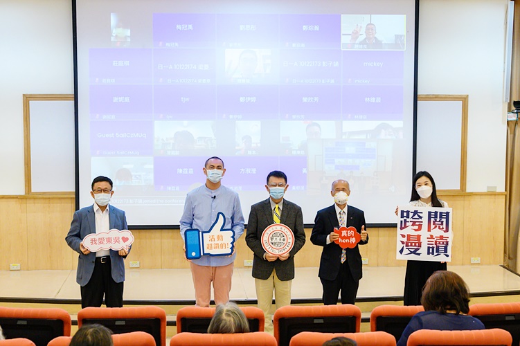 本校圖書館舉辦以「跨閱.漫讀:臺、法漫畫中的文化對話」為主題的一系列線上書展,以臺、法漫畫為主軸,分別有「飲食生活攻略」、「社會政治映照」、「環保行動覺醒」及「藝術美學想望」四大面向,希望讀者能夠以新穎的角度展開對漫畫的新視野。其中呼應「飲食生活攻略」主題,於111年5月18日在外雙溪校區普仁堂舉辦實體及線上同步講座,重磅邀請國際名廚江振誠先生,分享個人從料理中領會到的真髓,以及從臺灣這片土地展開的初心。聆聽講座師生眾多,潘維大校長、趙維良副校長、董保城副校長及前駐法代表處呂慶龍特任大使均一同參與這場知識與美食饗宴。