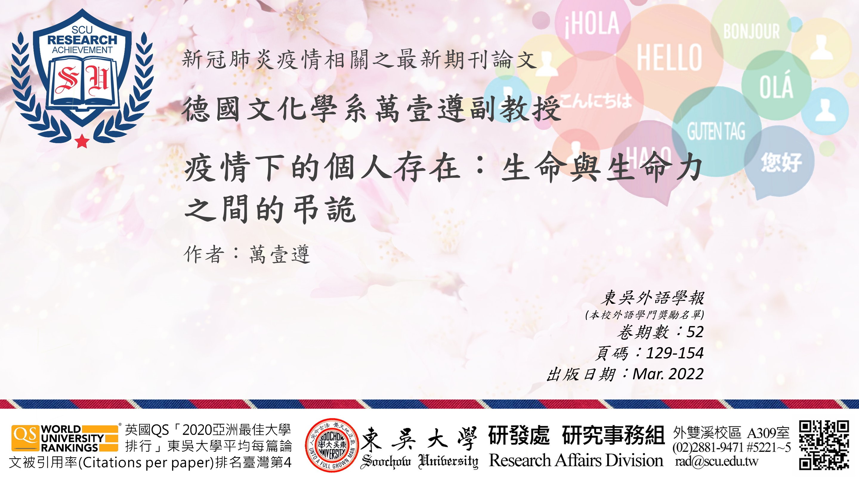 德國文化學系萬壹遵副教授發表新冠肺炎疫情相關之最新期刊論文