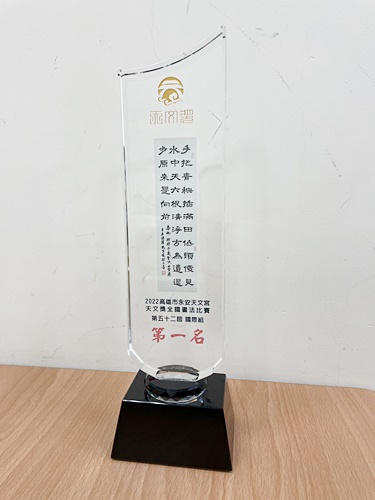 在日本求學時,武笠同學曾於二松學舍大學中國文學學科專攻書法領域,來到臺灣後更精進所學,常於課業外,積極提升書法能力,主動參加書法相關課程及參與比賽,歷經淬鍊得此佳績,實值得喝采與勉勵。