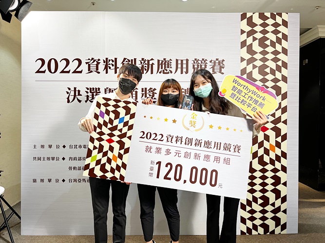 為促使民眾透過資料運用,提出解決與改善社會關切的議題,進而提升服務品質,內政部辦理「2022資料創新應用競賽」,開放大量有關民生的資料供參賽團隊蒐集、處理與分析。比賽結果揭曉,本系學生溫偉成(巨資三B)帶領團隊成員:吳自回(資管系畢業校友) 、徐筱涵(資管系畢業校友)、蘇品心(國貿系畢業校友)及顏貝家(臺北市立大學都會產業經營與行銷學系碩士生),共同打造「WorthyWork─智能工作推薦暨比較平台」,榮獲就業多元創新應用組「金獎」及獎金12萬元,成績斐然。