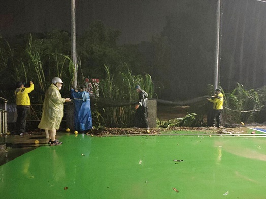 本次校園在颱風前夕均進行加強防護,總務處、校安中心同仁們全力投入防災行列,而學校同仁們無畏風雨,於災情發生時第一時間返校處理,使得危害降到最低,讓每位東吳人深受感動。再次感謝各單位同仁恪盡職守,合力攜手守護校園,學校也會持續加強防災整備工作,提供東吳師生安全的校園環境。