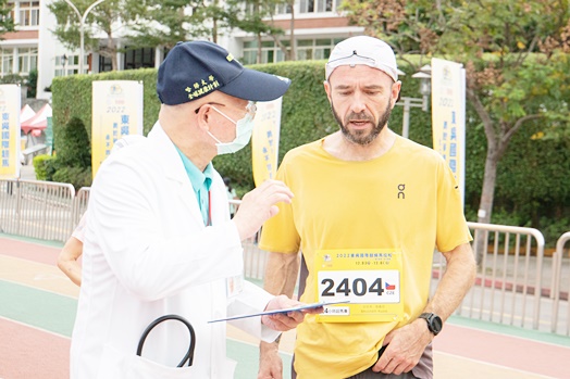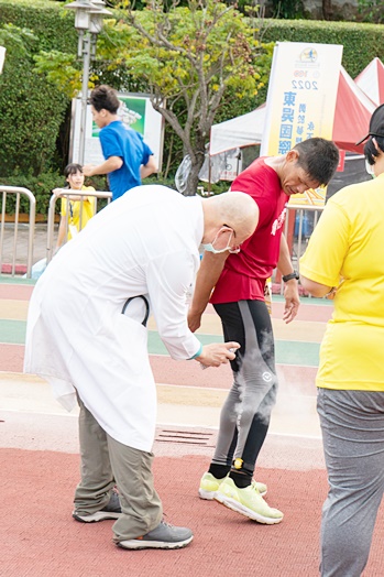 「醫生!我不能站,但我可以跑!」高醫師說道,從1999年參與第一次東吳超馬以來,見證了許多超馬選手突破自我的瞬間。曾有選手一到醫護站便因體力不支而倒地,但在志工們攙扶起身後,又馬上重回跑道、投入比賽。每位東吳超馬選手的毅力都令人敬佩,另外也感謝高偉峰醫師與醫療團隊數十年來無私的奉獻,成為賽場上選手安全的最堅強後盾。