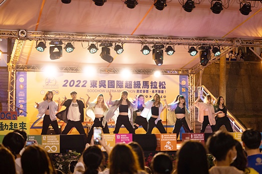 首先由校友太鼓團揭開序幕,他們響徹雲霄的鼓聲及整齊劃一的動作,聲聲敲進超馬選手及東吳師生的心裡,為東吳超馬注入一股堅定的精神,緊接而來的是由吉他社及舞蹈研究社帶來熱情四射的表演,他們分別展現出溫暖清澈的嗓音及強而有力的舞蹈動作,享受著表演的台下觀眾也紛紛隨著音樂輕輕搖擺,所有表演者皆於演出結尾為所有努力奔跑的超馬選手加油打氣。