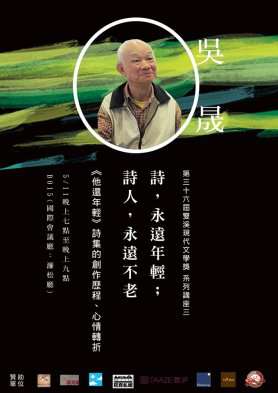 5月14日,本校雙溪現代文學獎邀請到著名鄉土作家-吳晟,來到雙溪校區國際會議廳進行第三波系列講座。晚上七點,一位慈祥的老先生悠然走入現場,用和藹笑顏看著台下每一位學生。他,是吳晟;他,還年輕。《他還年輕》是吳晟老師2014年10月所出版的詩集,內容集結了老師14年以來所累積的詩文作品。而今天的演講主要是為我們分享《他還年輕》詩集的創作歷程與心情轉折。