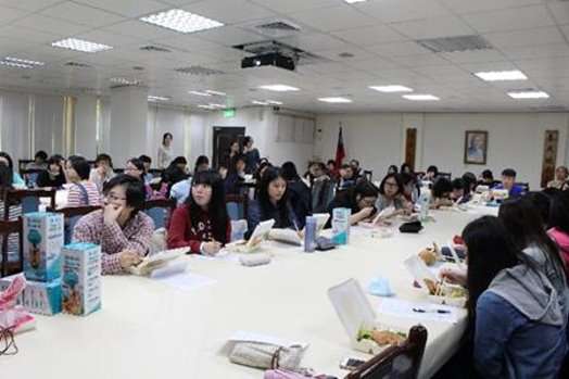張營養師特別來到本校為我們重新建立對於食物以及營養的基本概念,今日現場所有參與師生皆獲得免費便當一份,而張營養師更藉由今日的便當內容,生動為我們建立對於營養與蔬食攝取的觀念。過程中更以有獎徵答的方式增進師生們對於知識的吸收以及活絡了現場氛圍。過程中張營養師也舉了許多例子讓我們深刻感受自己每日對於食物攝取的錯誤觀念,例如:一顆蛋的營養等於一份肉,一杯豆漿的營養也等於是一份肉,如果你今天早餐吃了一份豬排漢堡加一杯豆漿,那你今天的早餐攝取了幾份肉?答案是三份。是不是很可怕?但我們卻完全沒有這樣的概念。