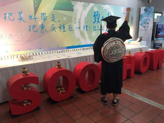 畢典活動處處藏驚喜,讓畢業生【扭轉未來】-只要以活動主視覺拍照上傳「校友資拓中心」粉絲專頁,並打卡按讚,完成FB活動後即可進行扭蛋一次。扭蛋內含扭蛋小公仔、各式校園紀念品及麥當勞蛋捲冰淇淋等。另外,可曾想過一年後的自己會是什麼樣?或曾期許一年後的自己應該是怎樣?【To The Future】-用一張明信片和一年後的自己說聲:Hi!當然,每個人對東吳大學的記憶都不相同,承載時光變遷的雙溪、充滿無限可能的城中,畢業生也可以【交換禮物】,以600元和母校交換一份超值禮物,投資東吳,投資自己!Making our history !!