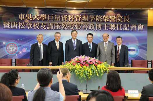 潘維大校長致詞表示,學校於104學年度全國首創巨量資料管理學院,為展現在巨量資料分析與應用方面之學術發展及人才培育的企圖心,巨資學院已延聘五位講座教授:台灣金融研訓院許嘉棟榮譽顧問,資策會大數據所林蔚君所長、中台雲周延鵬執行長、國家政策研究基金會朱雲鵬教授及實踐家教育集團林偉賢董事長,藉以協助東吳大學在大數據航道上,能於不同領域,如資訊安全、金融科技、智慧城市、專利、國際經濟與互聯網創新商業模式等,有更寬廣且深入的發展,此次能再聘請前行政院張善政院長擔任講座教授兼榮譽院長,可謂如虎添翼。張善政博士在擔任行政院副院長期間,特別重視大數據與開放資料(open data)的應用,迄今政府開放資料運用,均有不錯的成果。