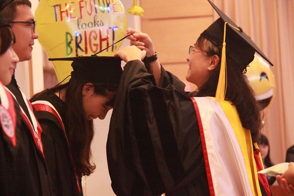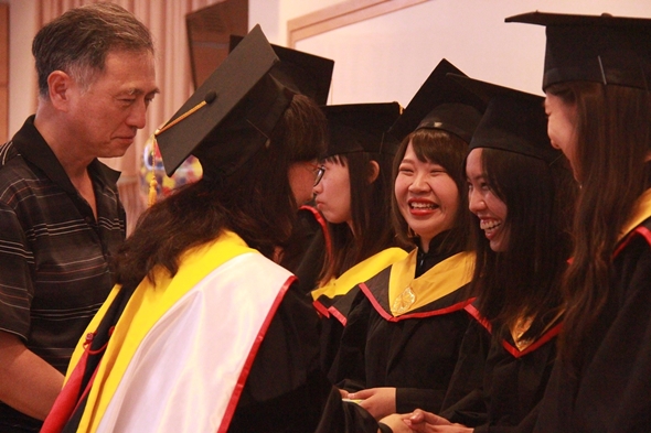 6月11日上午理學院畢業典禮結束後,心理學系全體畢業生來到普仁堂,參加心理學系撥穗典禮,在家長親友們見證下,由系主任一一為畢業生撥穗,象徵學士、碩士修業完成,即將邁進生命中的下個階段。