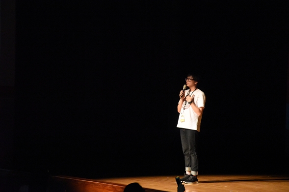結業式到了尾聲,在一片漆黑的傳賢堂中,學生總召邱柏睿同學迎著一束燈光走到台上,祝福所有新生在往後的數年的大學生涯都能無懼闖蕩,並以「遺憾是美麗的瘡疤,但後悔卻是一把刀」勉勵所有同學,溫馨動人。