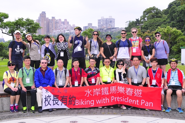 本學期的「校長有約─水岸鐵馬樂春遊」活動,於5月6日盛大舉行。共有來自德國、韓國、澳洲,及大陸等近120位的境外學生參加,另有來自安徽師範大學的項念東老師、西北政法大學的朱風翔老師,以及福州大學的吳美田老師共襄盛舉,活動熱鬧溫馨。