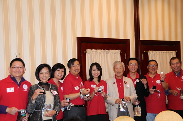 3月4日(六)是個風和日麗的日子,當天還不到中午,校友們陸續出現在羅蘭崗的潮樓餐廳,包廂門口掛著東吳的紅黑色三角旗,室內牆壁掛有校旗、校徽等等。大家依序報到、繳費、領取名牌,每位還可獲贈得一枚校旗或校友別針,各就各位。當天席開五桌,校友會亦在包廂內設了一個小櫃台,義賣校友會特別製作的東吳運動衫,純棉品質、顏色及式樣多元,最重要的是印有東吳校徽,設計非常搶眼,吸引許多校友購買,還有些東吳紀念品供大家選擇。大家都迫不及待的穿上制服。