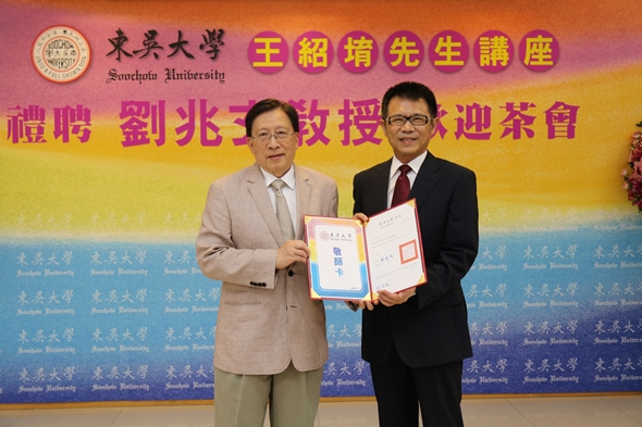 106學年度禮聘前行政院長、現任中華文化永續發展基金會董事長劉兆玄教授為本校王紹堉先生講座教授,於106年10月3日上午在城中校區舉辦禮聘暨歡迎茶會。劉兆玄教授於民國93至97年間擔任東吳大學校長,在任期間,致力推動各項追求教學卓越之計畫,為本校邁向一流教學大學奠立良基,樹立優質教學大學的標竿。