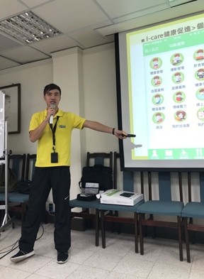 本次活動期間,健諮中心提供每位參與者一隻藍牙智慧手環,只要戴上就能輕鬆測量走路步數、進行睡眠記錄。參與者還需要每天記錄三餐食物詳細內容並上傳至電腦版「i-Care健康促進服務雲」,瞭解自己攝入的卡路里、脂肪等,長期下來,將會增進對各種食物「營養值」的瞭解,逐漸懂得合理搭配食物,成為自己的營養師。經過長期的記錄,i-Care系統會形成「熱量攝取」、「體重變化」、「運動消耗」三大數據的曲線圖表,一目了然地體現出參與者這段時間的健康管理成效。