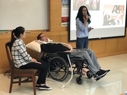 10月18日下午,健康暨諮商中心在城中校區舉辦了漸凍人講座「愛與陪伴—飛翔的力量」,邀請到台灣漸凍人協會理事長、東吳商用數學系(自97學年度起更名為財務工程與精算數學系)校友陳大謀,以及國際漸凍人聯盟理事、東吳EMBA校友屈穎為同學們演講。