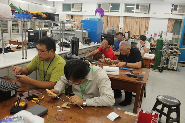 有別於以往,此次活動從講演、工作坊,均由物理系出動教師、助教與學生形成一個個團隊,針對實驗項目,從選材、製作、測試不斷進行,耗費兩、三個月的時間完成各類材料包。70餘人參與的活動,節奏緊湊,時而笑聲不斷,時而驚呼連連,時而搔頭苦思,時而振筆埋首,場面熱鬧。