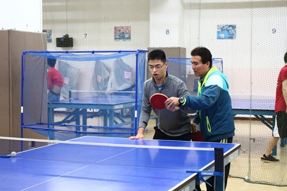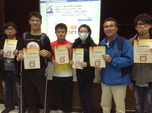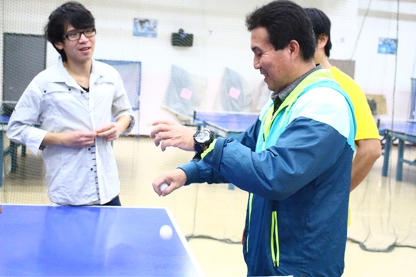英文系的蕭于均同學提到自己視力不好,閱讀文字總是倍感吃力,往往需要將文字放大數倍才能看清楚。修習李老師的適應體育課後,他感覺自己的視力在練習桌球時開始漸漸變好。「我是在上學期修老師的課。那時候一有空堂時間,常常會問老師可不可以陪我打桌球,老師都十分樂意。」本學期李老師即使休假無課,卻仍抽空回校陪學生們練習。對于均而言,李老師既是適應運動上的引路人,也是人生路上的精神導師。當許多事情碰上遲疑時,于均都特別喜歡找老師討論,他害羞的說,在李老師面前可以毫無顧忌地講出自己內心最深處的想法,老師也會像剝洋蔥般一層層慢慢分析,並帶給他正向的思考。能夠遇到李老師他覺得是非常幸運的一件事。