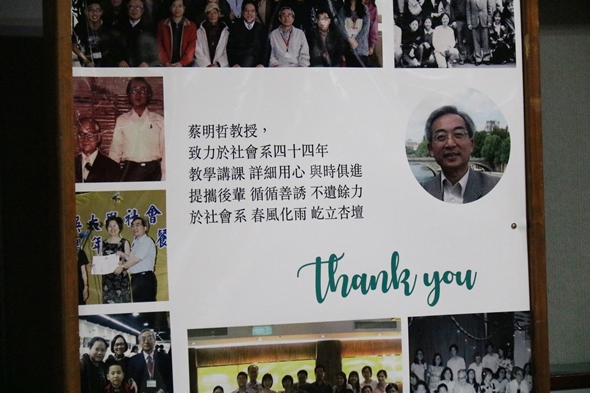 社會系今(2018)年歡慶建系45週年,本系最資深、奉獻最長久的蔡明哲教授將於2月1日起榮退,自1973年楊懋春教授創立社會系算起,蔡老師任教已44年,他的學術生涯就是社會系光輝的歷史,更因其教學、研究與行政卓越貢獻,蔡明哲教授榮退後獲聘為社會系榮譽教授。