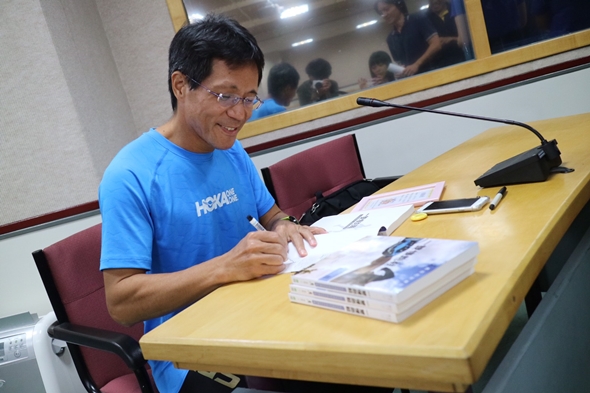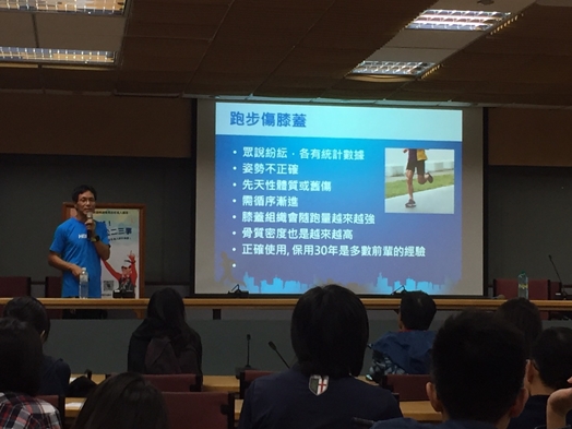 年逾50的高志明選手說話幽默,因為跑步的關係讓他看起來身體硬朗,他十分鼓勵大家練習跑步,他認為,跑步可以練身體,還能找到自我。歷史系的吳同學表示,雖然他沒有練習過跑步,但是聽完高志明先生的演講後,感受到了熱情,希望之後也能像高志明一樣跑出屬於自己的人生!