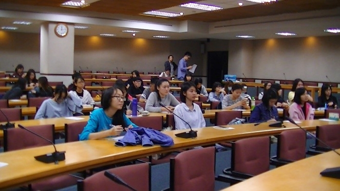 最後,於日本藤田商社箱根小涌園(觀光溫泉樂園)實習的日文系王珮馨同學,向在座同學們清楚扼要的介紹了該如何找尋國外實習的管道,相關代辦和需要備妥的資料、簽證……等細節,以及從準備日文面試,到如何和實習方進行溝通聯絡的過程。她也提醒有意前往日本實習的同學們,日本商社是很注重打招呼的!上班的環境往往友善輕鬆,然而卻也十分嚴謹。此外,她亦以「接客七大用語」為例,提出外國公司國際化以及貼心的一面。