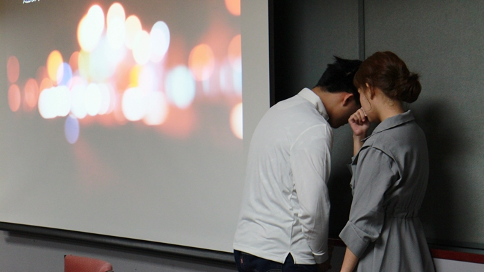 講座中,李劭婕也邀請同學上台來進行簡單的體驗活動,先是讓一位同學站在台前望著台下1分鐘,爾後聽她的指令再重新望向觀眾一次。她表示,兩次觀望的不同在於,起初觀者的不明所以,與再次望向觀眾時,得知模擬情境「將有槍手闖入教室,而你只能選擇救10位同學」的困窘急迫。李劭婕笑說:「在第二次的時候,我認為他非常『有戲』。」