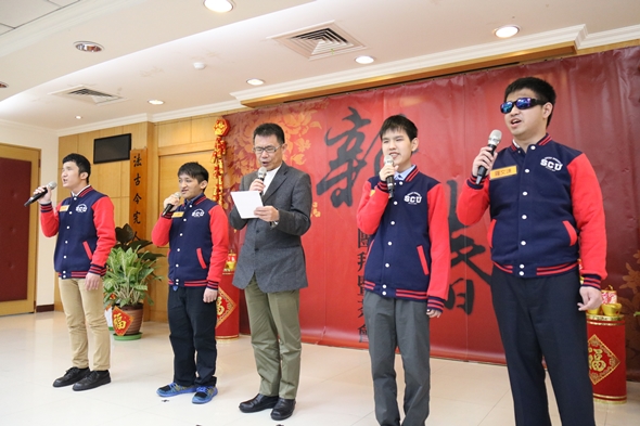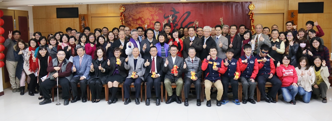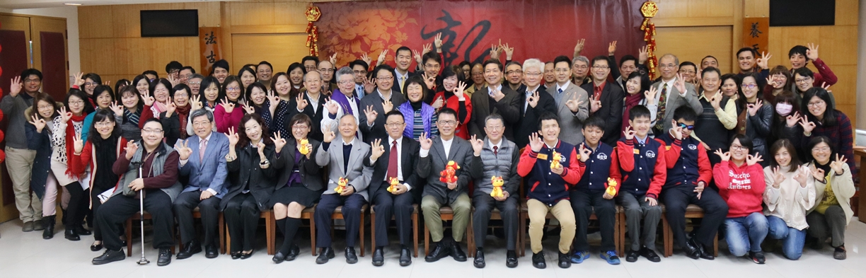 本校於107年2月26日開學日舉辦新春團拜,潘維大校長、趙維良副校長及董保城副校長率領校內100多位教職員齊聚城中校區2123會議室互道恭喜、祝賀平安,迎接2018狗年新氣象。